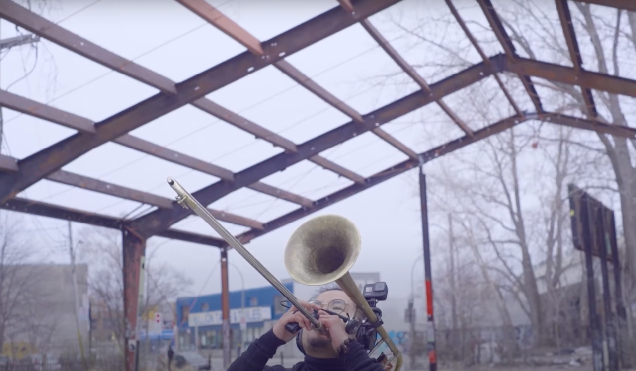 The original concept emerged from the mubone—a spatial performance technology and compositional approach co-created by Canadian trombonist-composer Kalun Leung and digital luthier Travis West. Since its beginnings in 2018, the mubone has continually evolved—initially conceived as a way of augmenting the trombone and interrogating its affordances when treated as an object or material rather than solely as an instrument. This inquiry led to the idea of using the trombone as a large pointing device, enabling the tracking of directional movement. In CSA, this pointing becomes a kind of digital paintbrush or spatial cursor—planting and retrieving sounds within a virtual sound field.